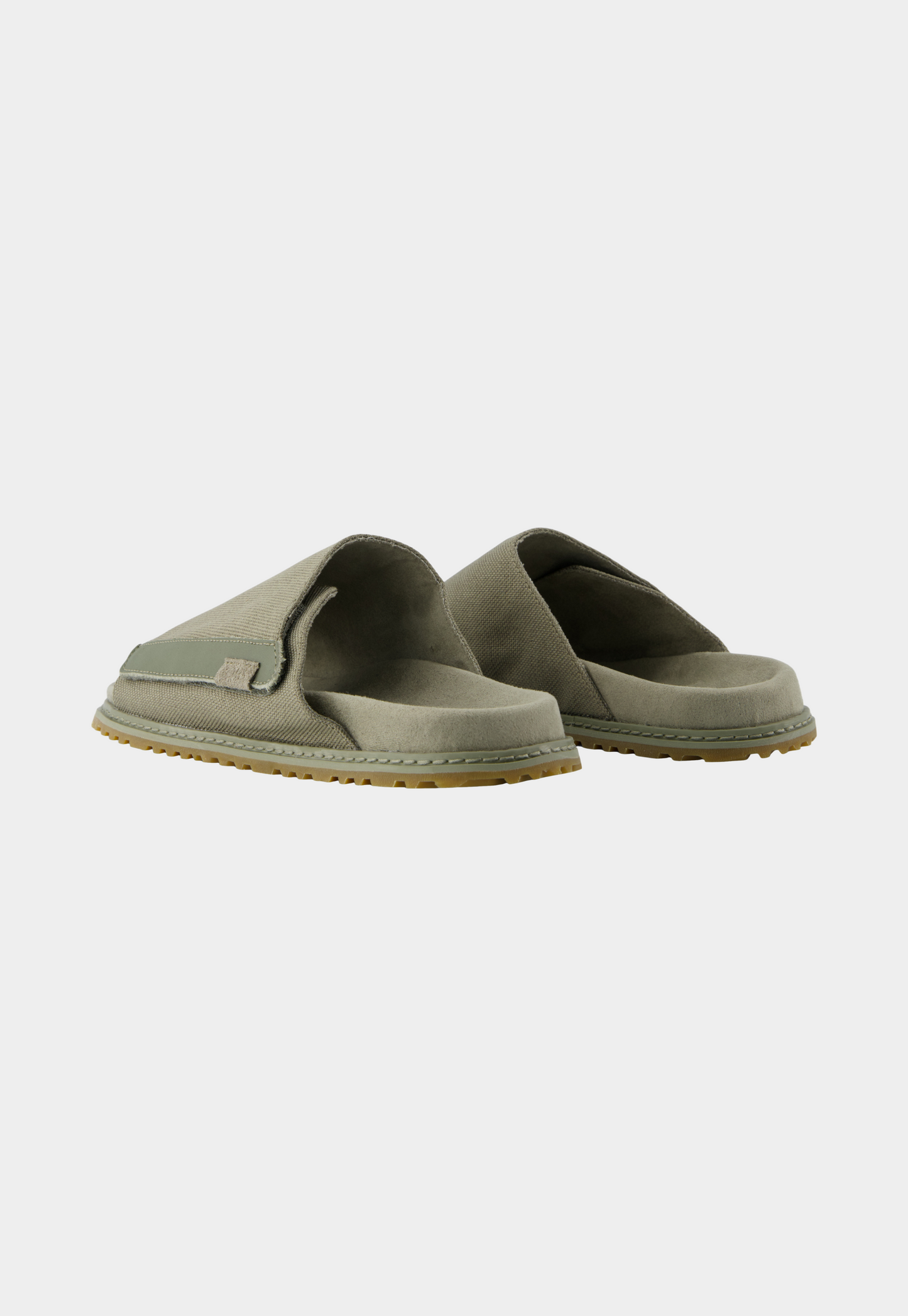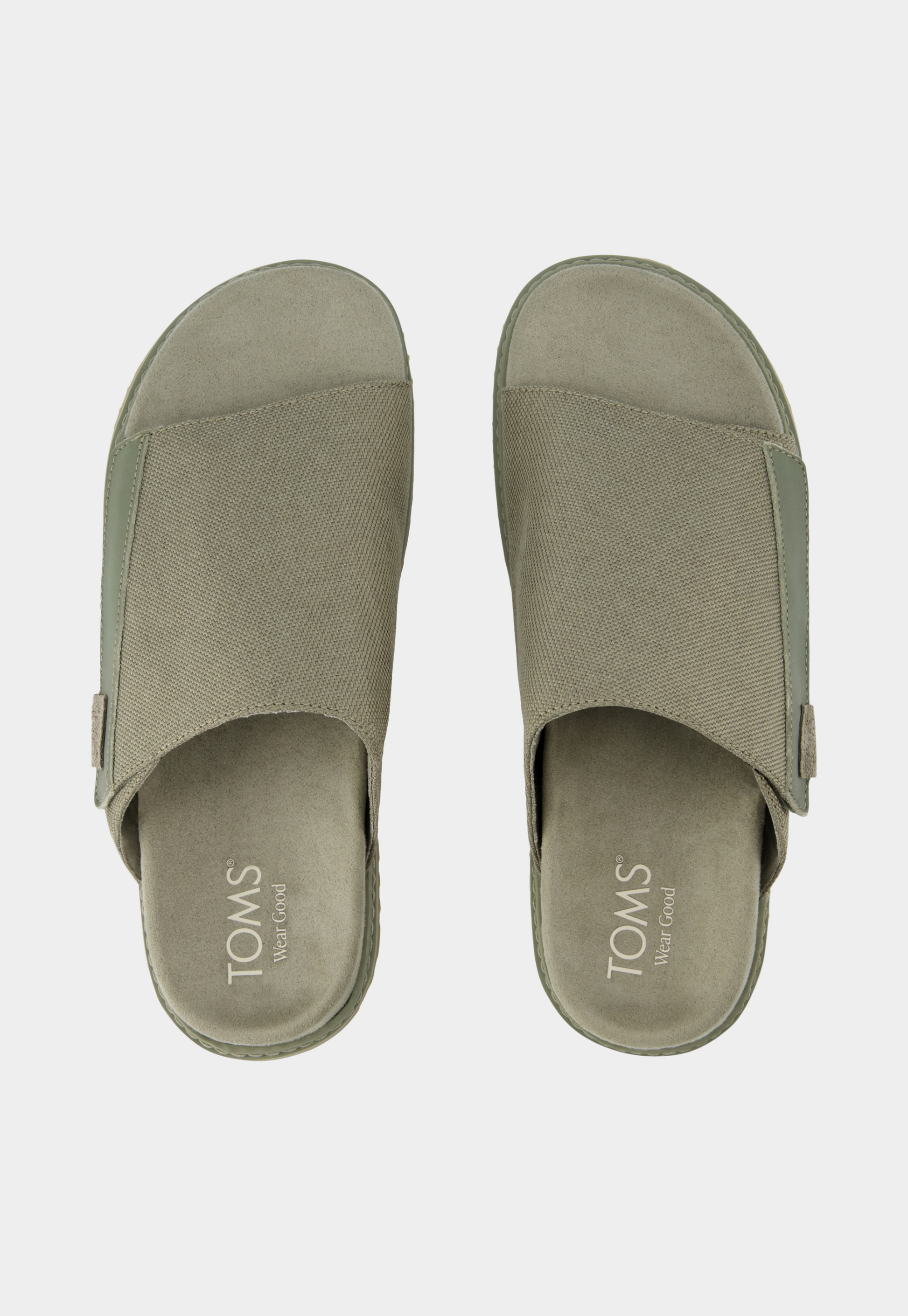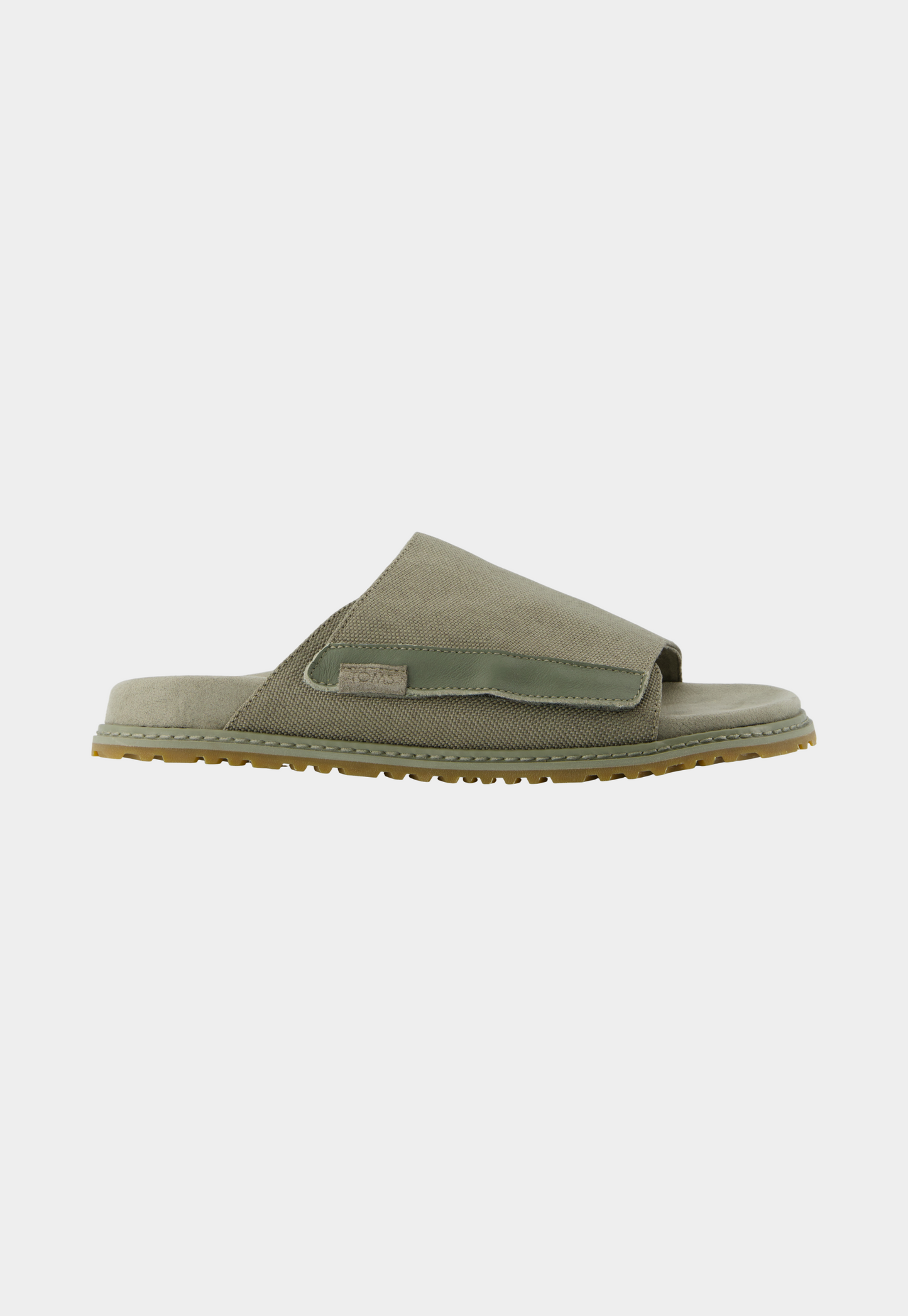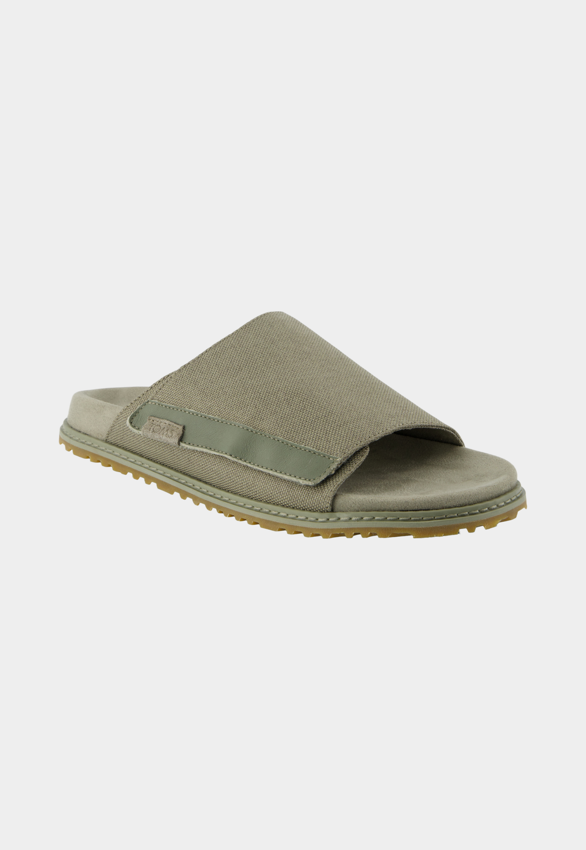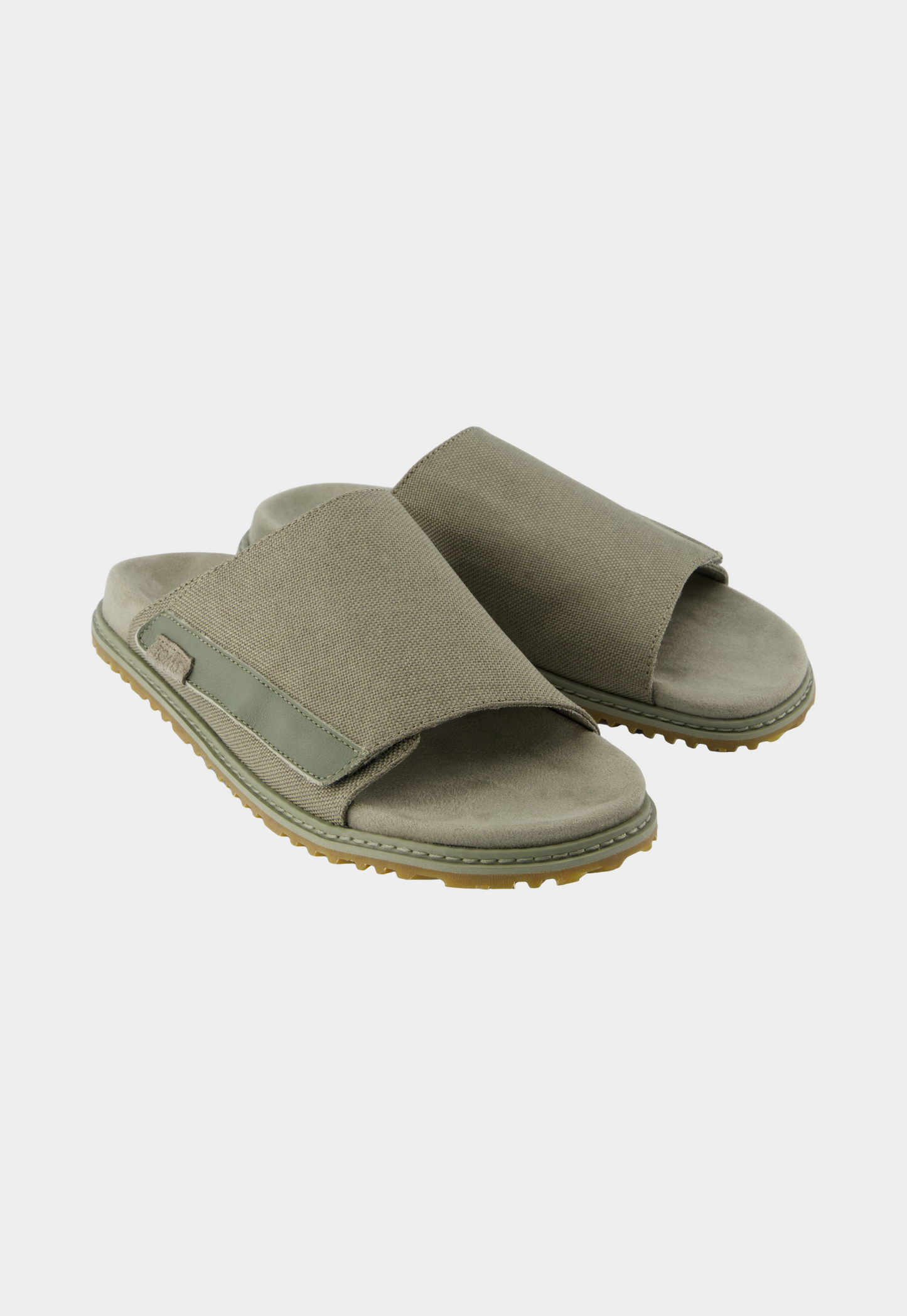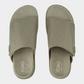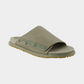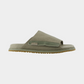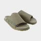 כפכפים שטוחים עם רצועת בד רחבה בגוון ירוק זית, עיצוב נקי ונוח עם סוליה תואמת.