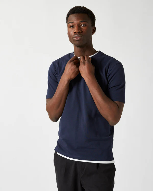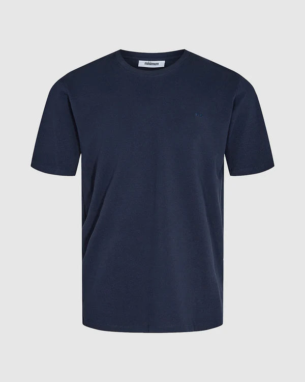טי שירט קצרה לגברים מבית המותג מינימום. בגזרה משוחררת עם מפתח עגול ושרוולים קצרים, עשויה כותנה אורגנית.