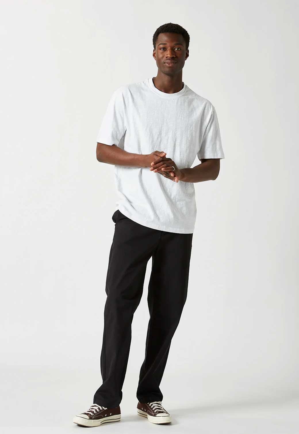 טי שירט קצרה לגברים מבית המותג מינימום. בגזרה קלאסית משוחררת עם מפתח עגול ושרוולים קצרים. עשויה כותנה אורגנית רכה ונעימה.
