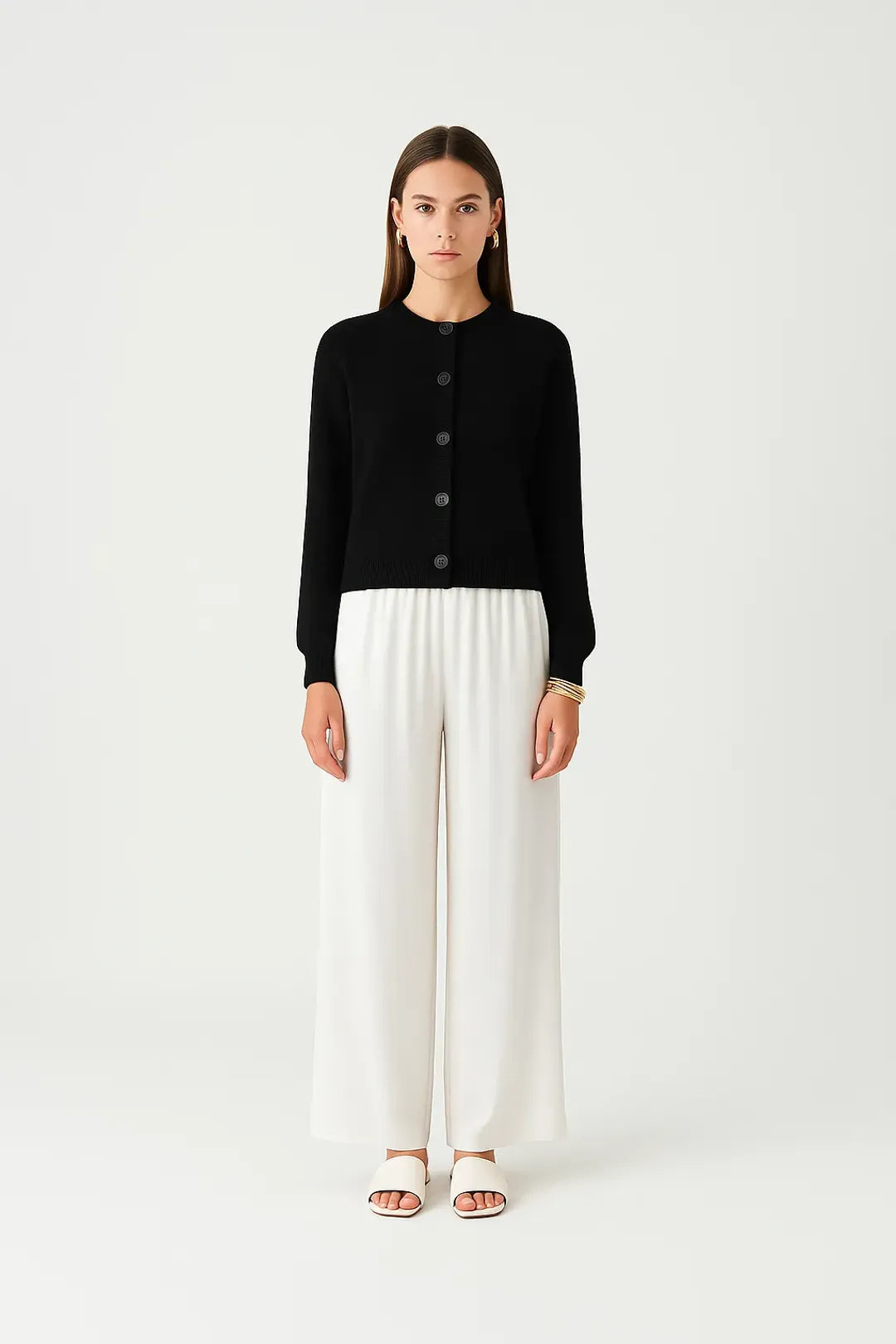 בגזרה רגילה עם מפתח עגול, סגירה בכפתורים בחזית ושרוולים ארוכים.