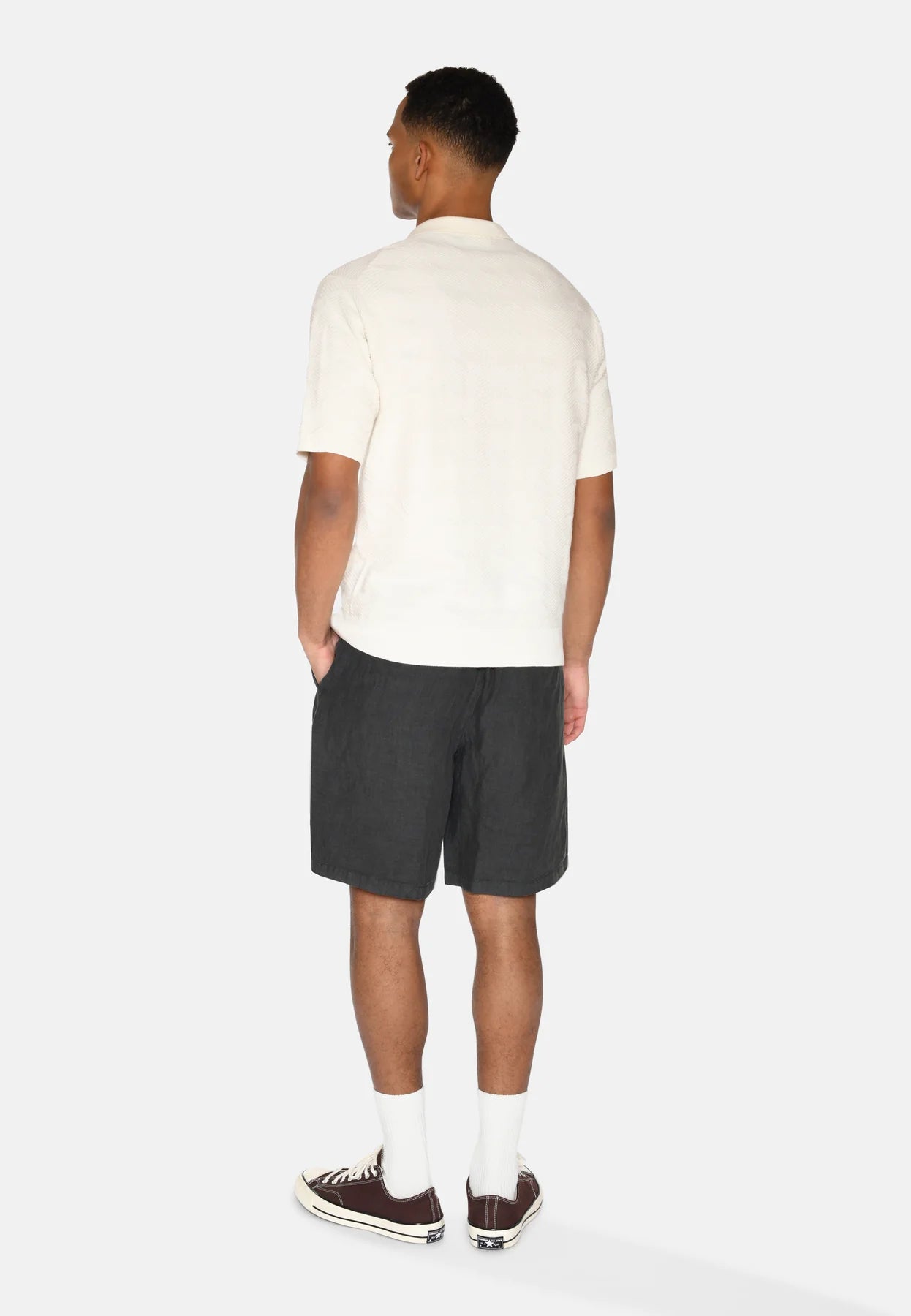 מכנסיים קצרים לגברים מבית המותג מינימום. עשויים פשתן קליל באורך הברכיים, עם גומי במותן וקשירה, ושני כיסים צדדיים.