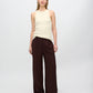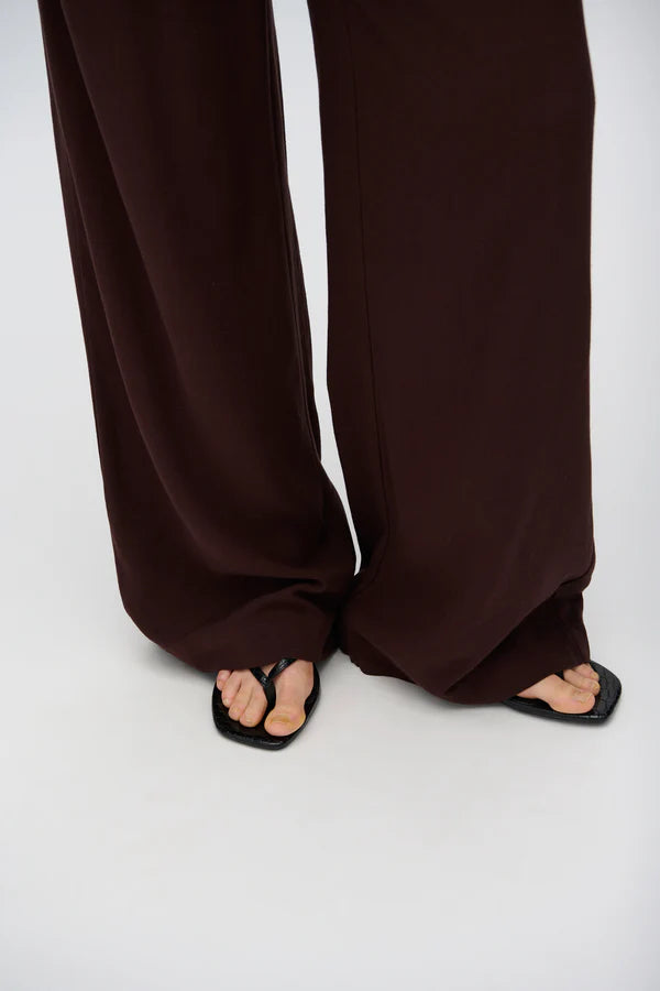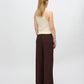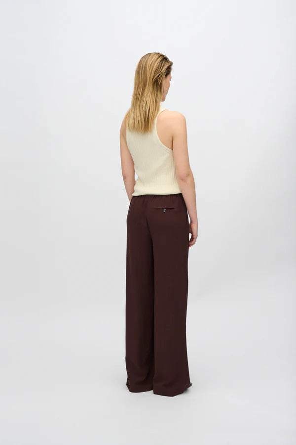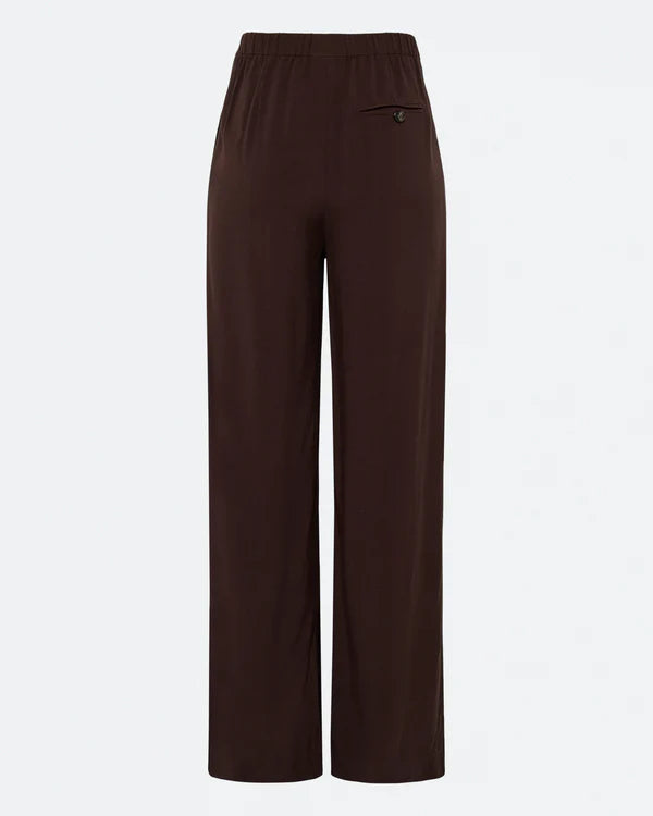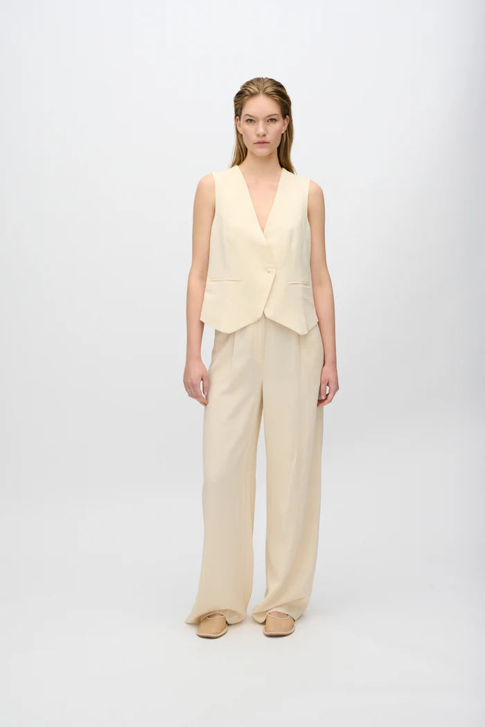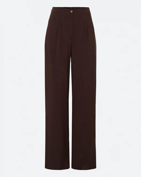 מכנסיים ארוכים לנשים מבית המותג מינימום. בגזרה נשפכת ורחבה, עם רוכסן סגירה וכפתור. עם שני כיסים קדמיים.